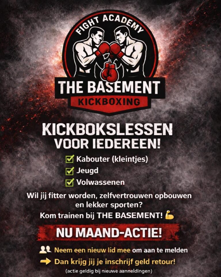 Fight academy the basement is al vele jaren een begrip in Hoogeveen en is gespecialiseerd in het les geven van K1 Kickboxing, Mauy Thai, MMA, Straat Vechten en Self Defence. Wij hebben gecertificeerde trainers met wedstrijd ervaring.